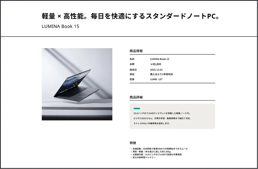 管理画面で入力した内容が、自動で一覧ページ・詳細ページに反映されます。